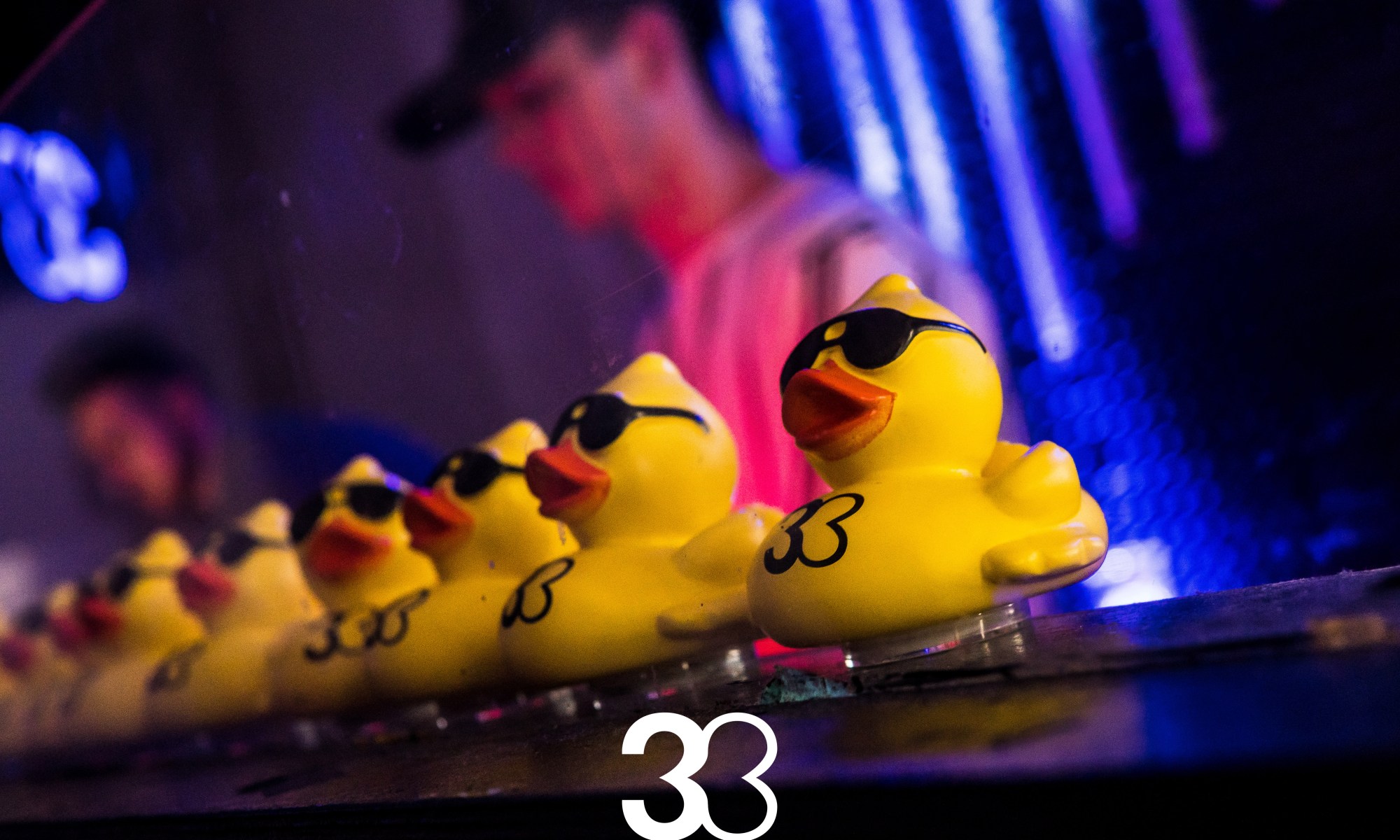 A minimal and intentionally light-touch production set up within the venue perfectly complimented the raw and gritty settings, giving a real old school rave feel to the room. Rotating beam lights attached to a rig overlooking the floor space and a powerful strobe behind the decks filled the dark room with a perfect balance of colour, whilst a unique touch of fluorescent light bars running from one side of the room to behind the DJ booth finished off the scene. 33 branded light boxes and signature rubber ducks completed the set up.