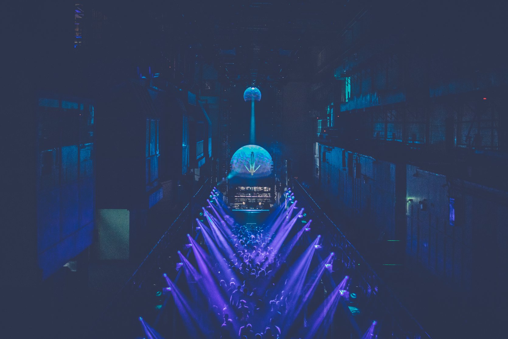 The lighting at Printworks is one of the most impressive installations we’ve seen and highlights the size and scale of the venue. For those technical of you, multiple Clay Paky Mythos, Stormy CCs, Sharpys, blinders & LED Strips are placed on the stage and suspended from eight video and lighting “pods” via a Kinesys motion system along the length of the hall.