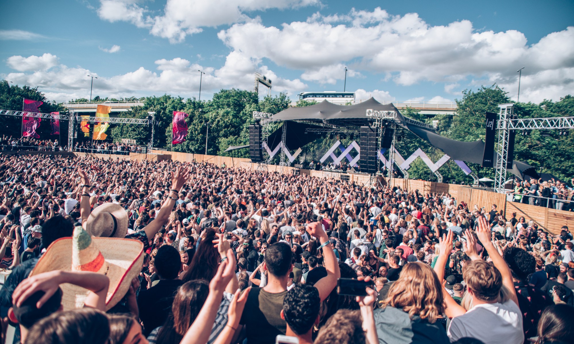 Boston Manor Park was the site used for Junction 2, a 28 acre park in Brentford, part of which is under a motorway bridge. This year was their biggest yet, with 5 stages. The Bridge – one of the most interesting places to party, if a little dusty. The Warehouse – sponsored by Relentless and was a custom built indoor warehouse with an impressive array of lighting and lasers.