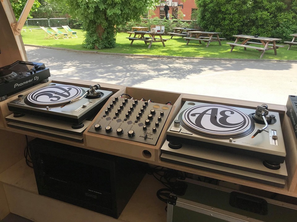 Alongside the industry standard DJ set up, the space also features a chill out area with sofas, bathroom, bar area and all important fridge to keep the beers ice cold during the day!