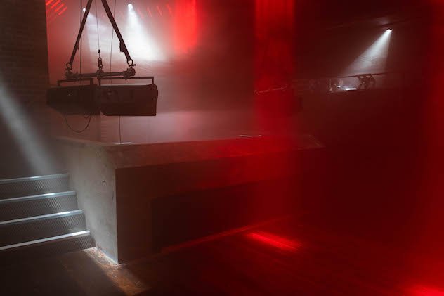“We cast the concrete on-site, so it has a very rough and industrial look, like a mini bunker, very brutalist, It’s big enough to have a live act inside, and there are steps on both sides where you can dance or you can even go behind and dance onstage. I think it’s a very inclusive way of having a dance floor.”