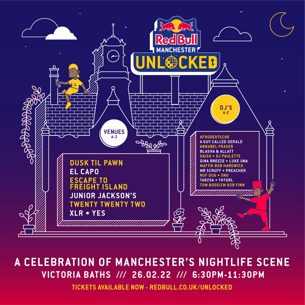 Red Bull Unlocked is the brand new global series that will be kicking things off with an exciting event celebrating Manchester’s iconic night scene. February 26th will mark the beginning of the new series with a collaboration of diverse performers, hospitality brands, bars and local vendors working together to create this unique event.