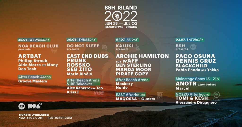 Arriving at the end of this month, BSH island is pulling out all the stops as they return to Zcre beach on the Croatian island of Pag from June 29th to July 3rd. After their previous two successful years, BSH has curated a strong program of music, featuring top tier artists traversing between house, tech-house and minimal.