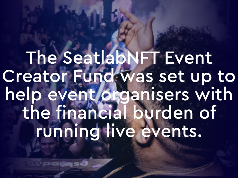 Applications can be made via https://www.seatlabnft.com/event-creator-fund and will be assessed on a case-by-case basis. Applicants will be asked to provide detailed information about their event, including any venue contracts and artist agreements.
