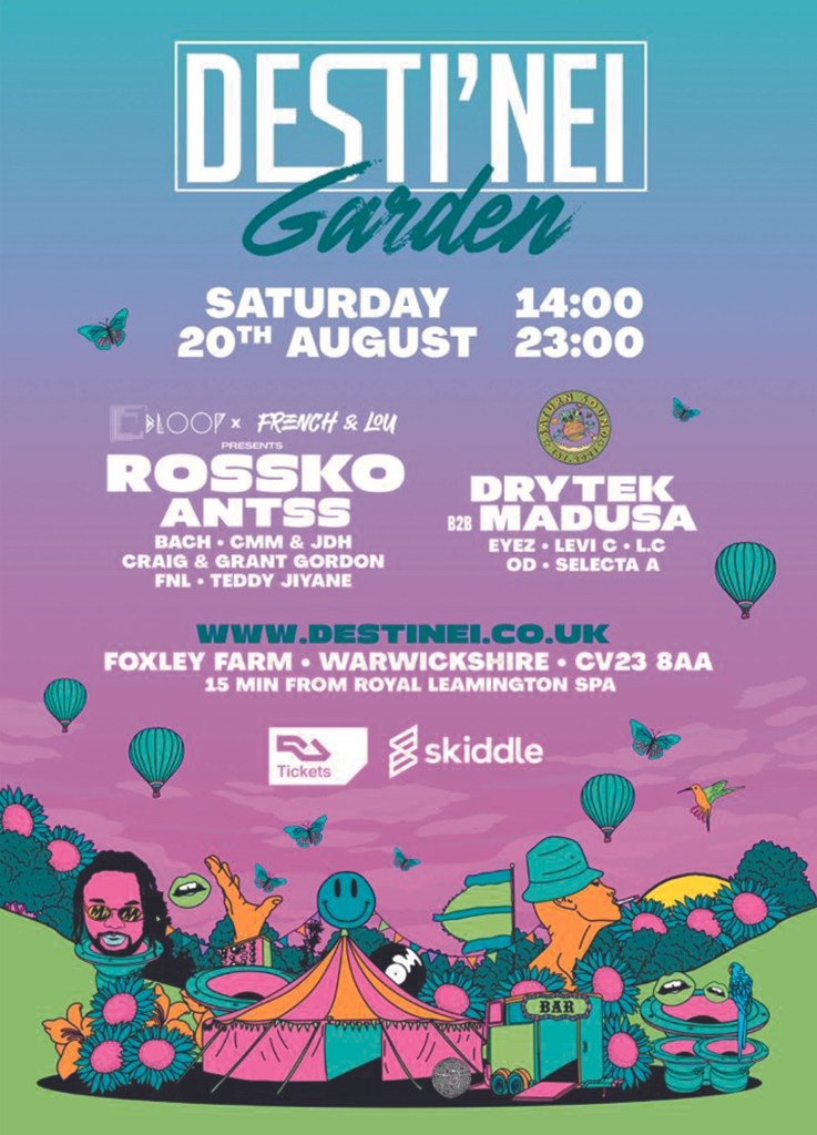 Foxley Farm in Warwickshire will be home to a two stage party utopia with a minimal masterclass featuring FUSE regular Rossko and high-flying artist ANTSS, alongside d&b madness from Drytek B2B Madusa. They’ll be supported by the likes of Bach CMM & JDH, Craig & Grant Gordon, Levi C, Eyez Selecta A & more.