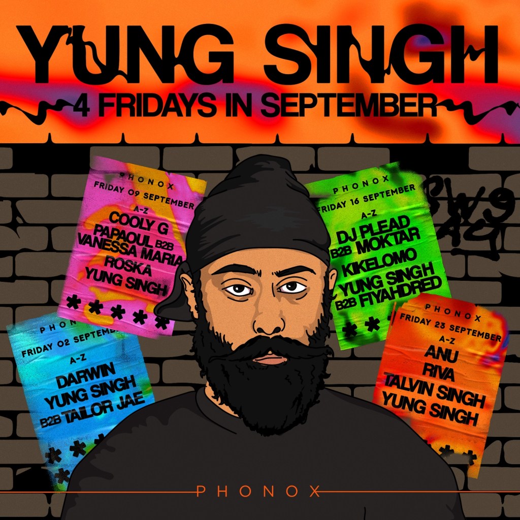 After making his debut at the venue just a few months ago, Yung Singh returns to Phonox every Friday in September alongside four hand-picked heavyweight line-ups spanning the entire musical spectrum. This week brings Darwin, and a B2B from Yung Singh himself & Tailor Jae.