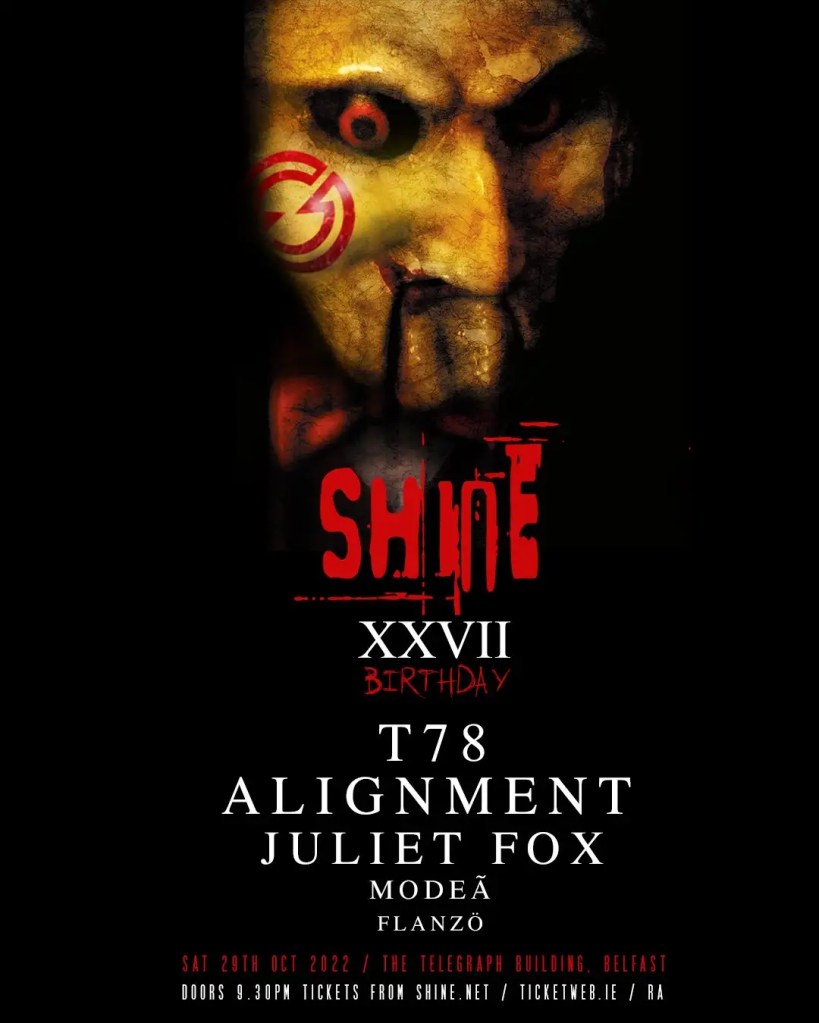 A heavy-hitting birthday celebration marking 27 years of Shine Belfast takes place this Saturday. Techno tastemakers T78, Alignment & Juliet in charge of proceedings.