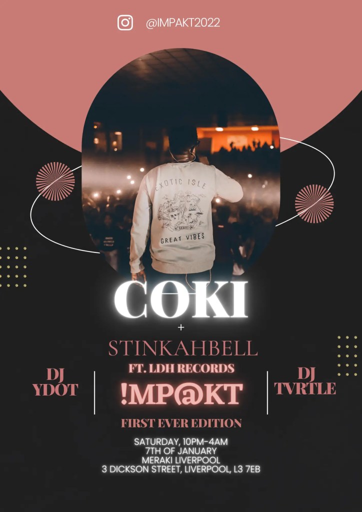 Dubstep legend Coki is landing at Meraki Liverpool to kick off 2023 in heavyweight fashion. Stinkahbell and LDH Records join Coki on the lineup – bring your bass face.