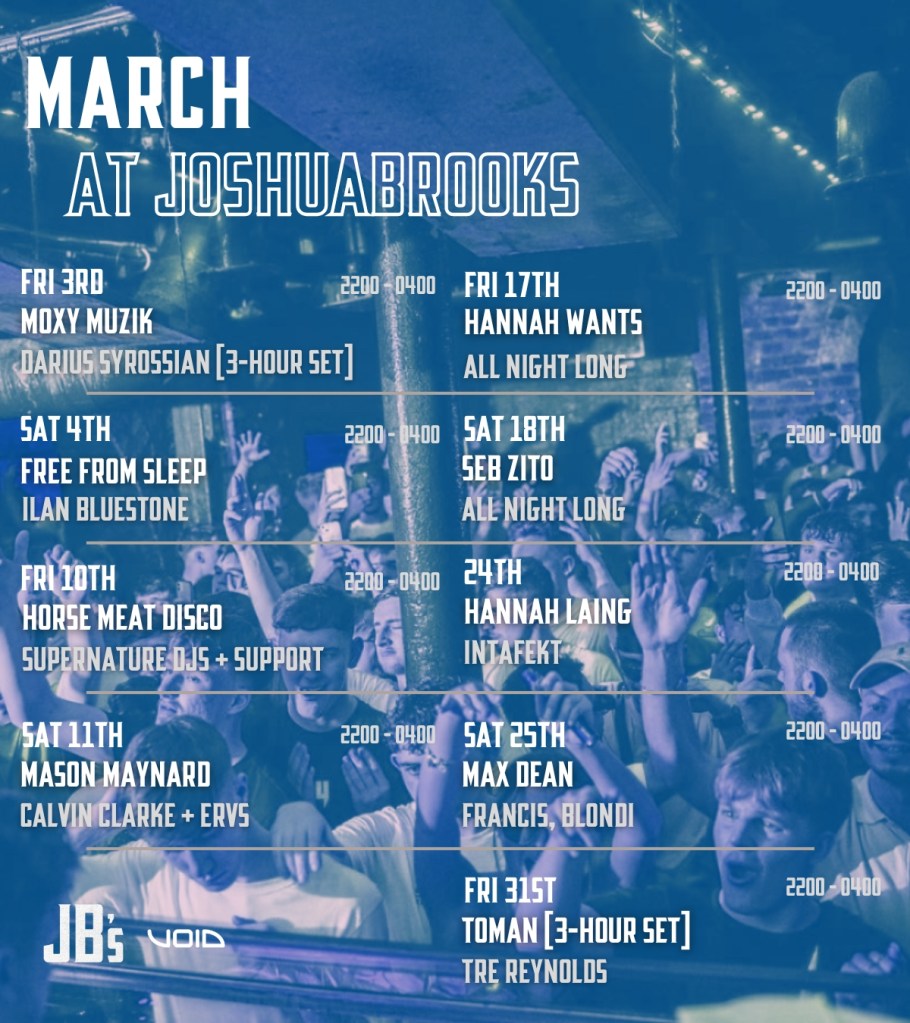 One of manchester’s leading venues Joshua Brooks is coming in strong with some big announcements for its upcoming spring series. The underground club has made a name for itself over the years with its intimate settings and big lineups. The club features a unique light system that illuminates the exposed brickwork of the underground room. This pairs perfectly with the crystal clear VOID sound system that allows artist to deliver the very best sounding performances. 2023 has already seen some stellar names including the likes of Schak, OC & Verde, Mike Skinner, Elliot Adamson & more.