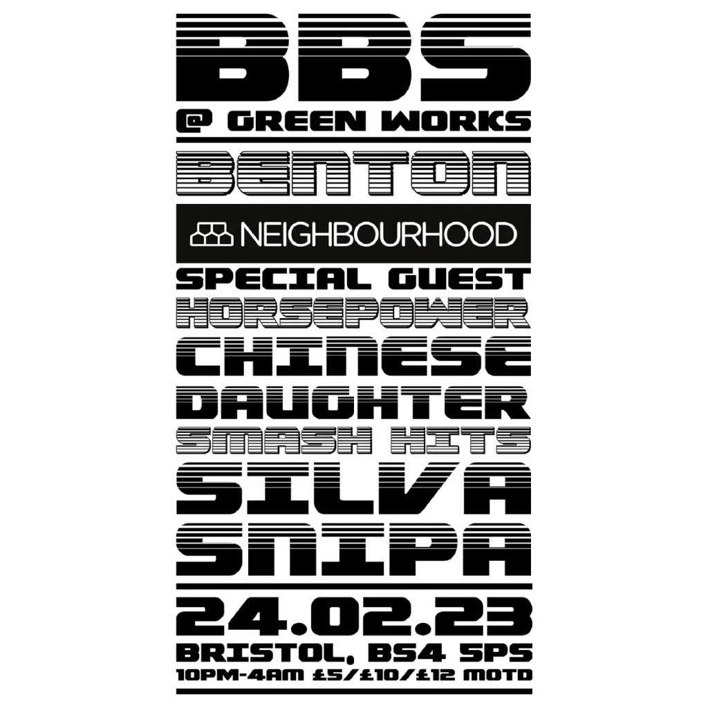 One of the most revered Breaks producers, Benton, takes over Green Works for an missable night of jungle, breakbeats, garage, hardcore, and outright disgusting basslines. With sound provided by Green King Soundsystems, this is one not to miss!