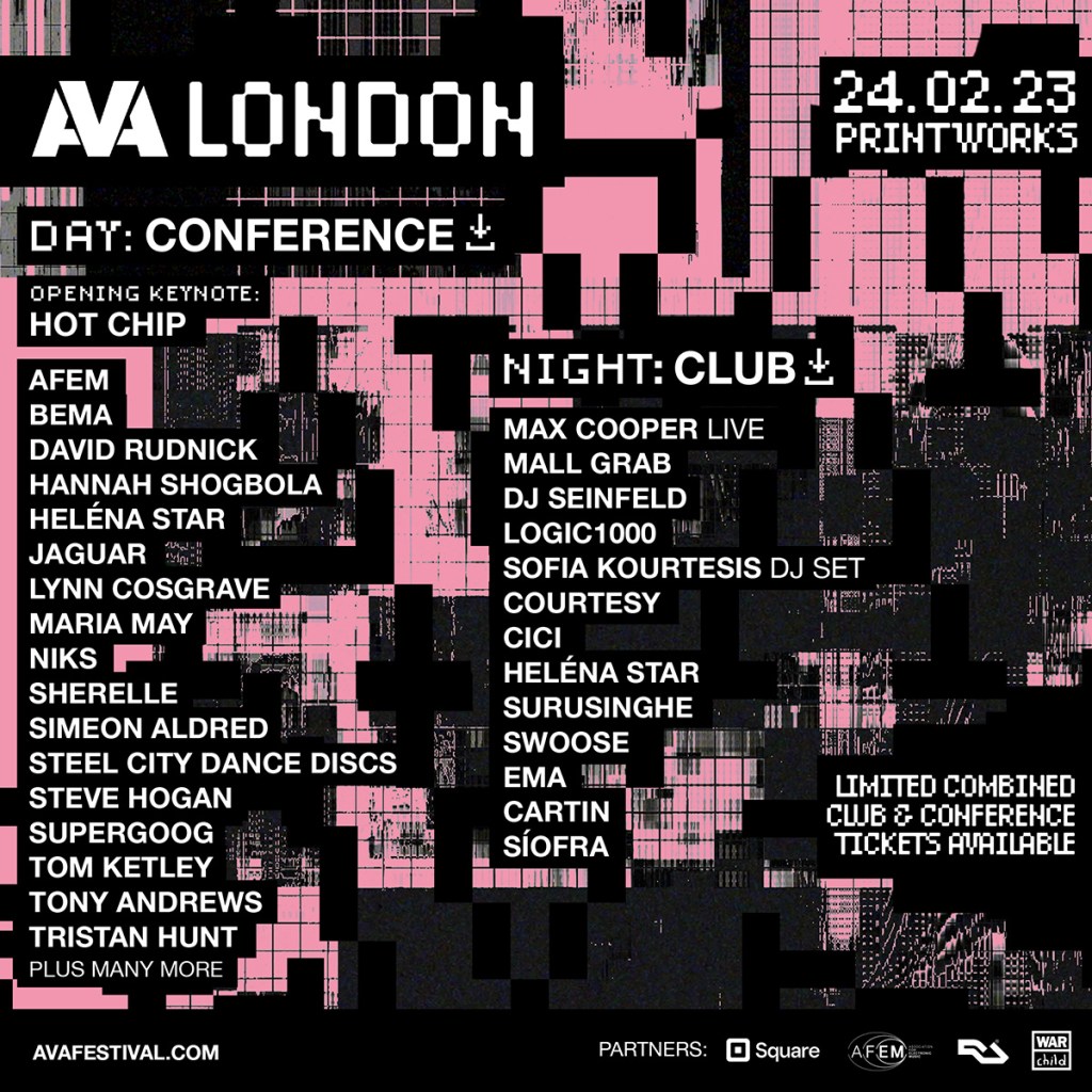 A full day and night in Printworks courtesy of legendary Irish brand AVA, as their annual music conference and rave touches down in London this Friday. Expect talks from Hot Chip, Sherelle, and more during the day, followed by a heavywight roster of artists in the evening including a special live performance from Max Cooper.