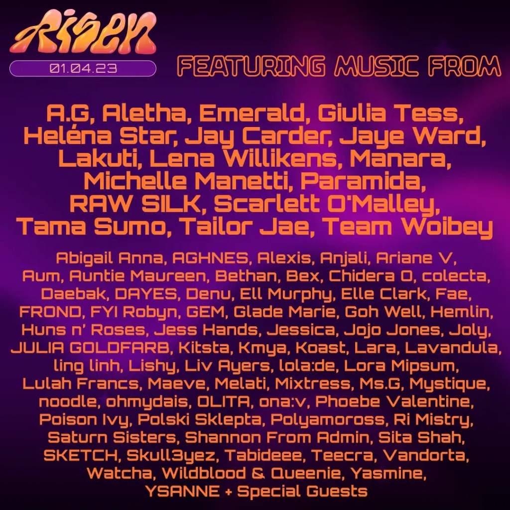 Risen Festival 2023 w/Aletha, Helena Star, RAW SILK, Tama Sumo, Tailor Jae, Ell Murphy & more