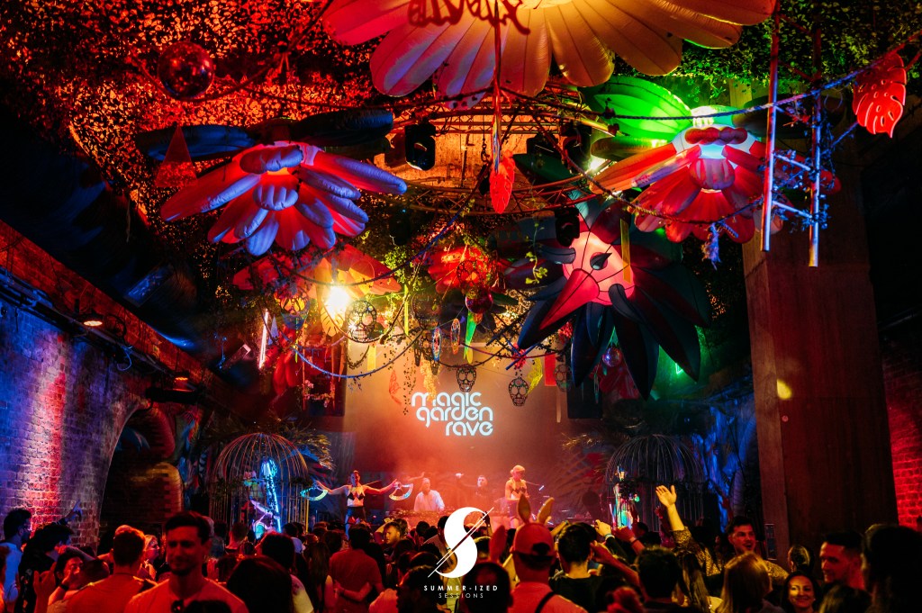 Taking place within the cavernous Victorian railway arches of The Steel Yard, this stripped back venue acted as the perfect canvas to be Summer-ized. The space was transformed into a Magic Garden Rave, littered with giant inflatables, spellbinding decor and captivating performers.