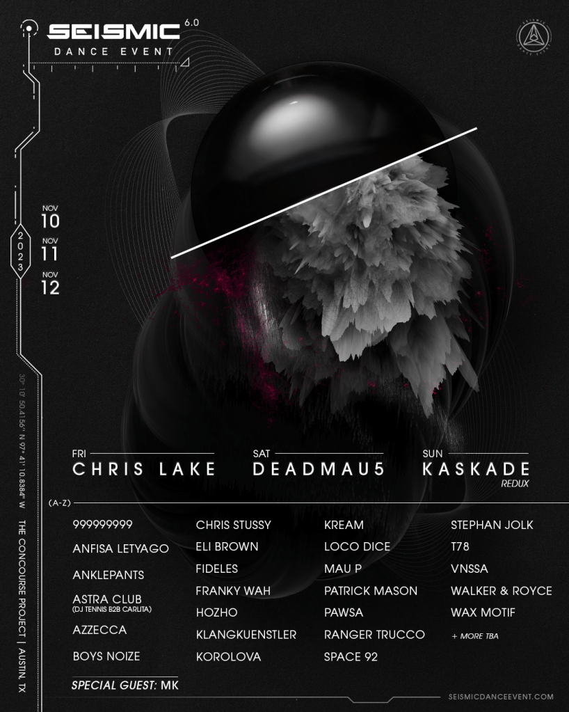 Seismic Dance Event, the annual US gathering for house and techno enthusiasts, has unveiled the remarkable lineup for its highly anticipated 6.0 edition. Set to take place at The Concourse Project of Austin, Texas, from November 10th – 12th, Seismic Dance Event continues to solidify its position as a prominent force within the global underground dance community, renowned for its intimate and immersive atmosphere.