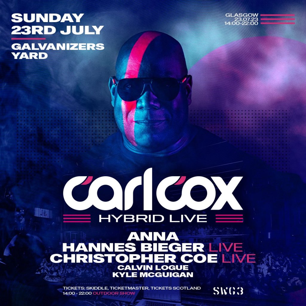 The legendary Carl Cox lands in Glasgow this weekend, performing his famed HYBRID LIVE show for the first time in Scotland. Fusing live production with mind-blowing visuals at SWG3’s iconic Galvanizers Yard.