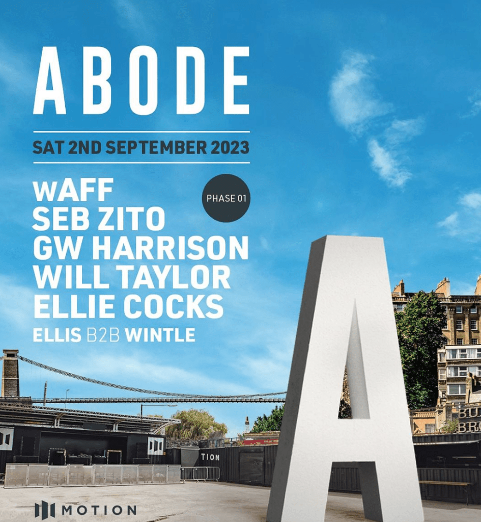 Four years since their last show in Bristol, house & tech brand ABODE returns the city for an all day open air show in Motion’s Container Yard. wAFF, Seb Zito, GW Harrison, & more are set to perform.