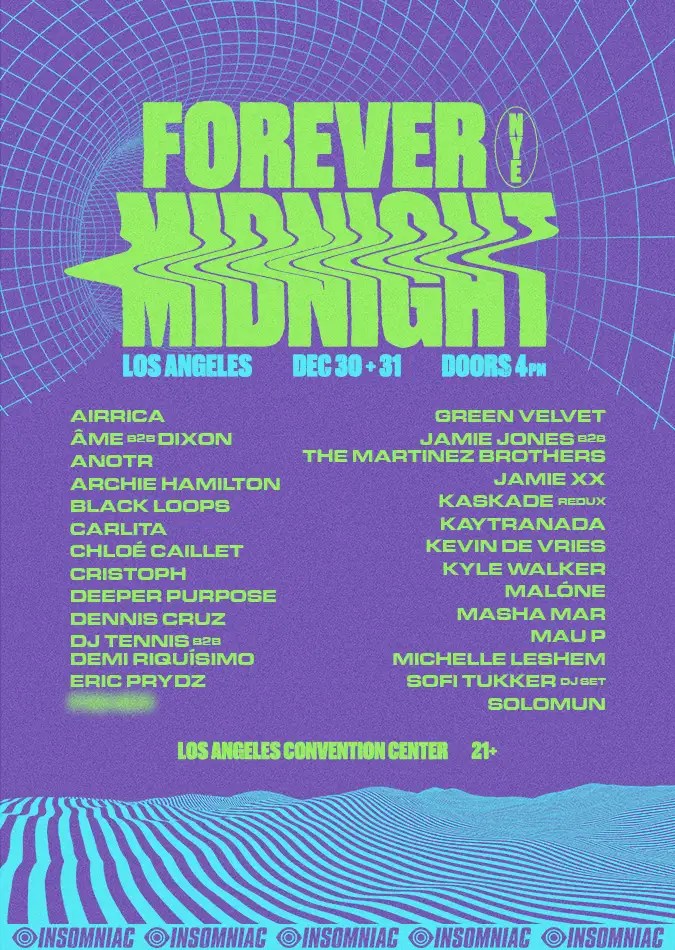 Another option to see out 2023 and end the year on a high note is new house and techno festival; Forever Midnight LA. The two day event held on the US west coast at Los Angles Convention Center features performances from Solomun, Eric Prydz, hometown hero Masha Mar, Kaytranada as well as a must see back-to-back from Jamie Jones and The Martinez Brothers.