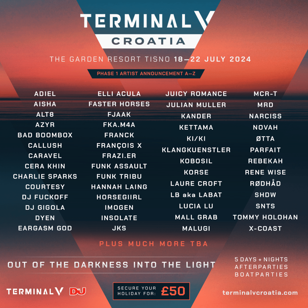 Looking ahead to the summer and off the back of just winning DJ Mag’s best British Festival award for 2023, one of the UK’s leading techno festivals is heading aboard. Terminal V is venturing to The Garden Resort, Tinso in Croatia for its debut international festival and what looks to be 4 unmissable days of music performed by some of the most exciting techno artists around the world.