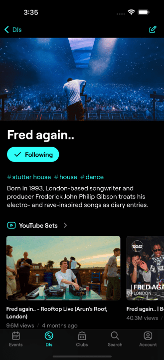 Much like Songkick does for concerts, Dancefloor provides real-time event discovery with personalised notifications. Users receive alerts when their favourite DJs announce performances nearby and can browse a curated feed highlighting trending events. Beyond being an essential tool for club-goers, Dancefloor also aims to support DJs and promoters in an increasingly competitive industry.