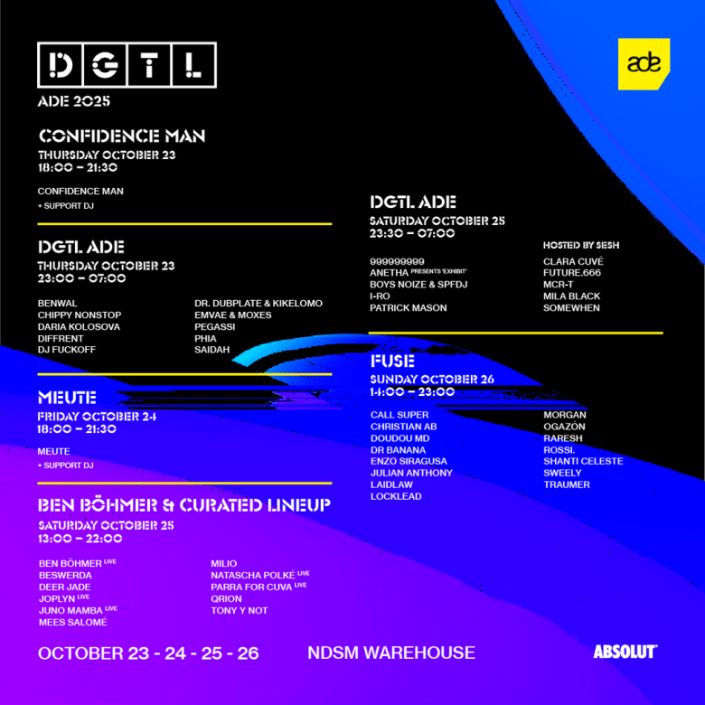 DGTL has revealed the full line-up for its return to Amsterdam Dance Event this October, featuring a four-day program of six unique shows at the iconic NDSM Warehouse.